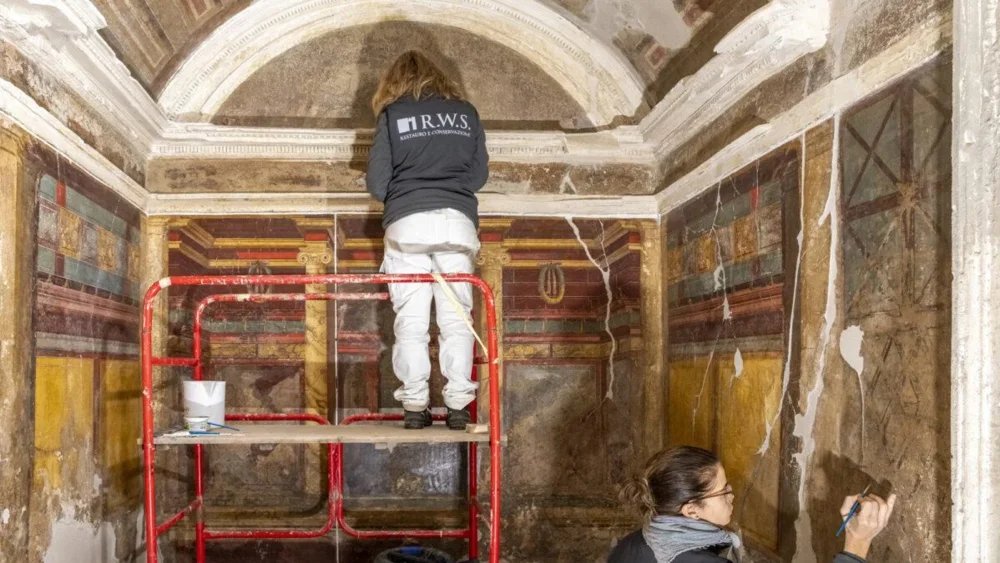 أدى التنظيف الدقيق للأسطح إلى استعادة ثراء الألوان، بما في ذلك الصبغة النادرة المعروفة باسم الأزرق المصري. تم تقدير هذه الصبغة الاصطناعية في العصور القديمة بسبب سطوعها وتعقيد إنتاجها. كما تم ترميم الفسيفساء والعناصر الجصية، مما جعل الجزء الداخلي “مقروءًا” للباحثين مرة أخرى.