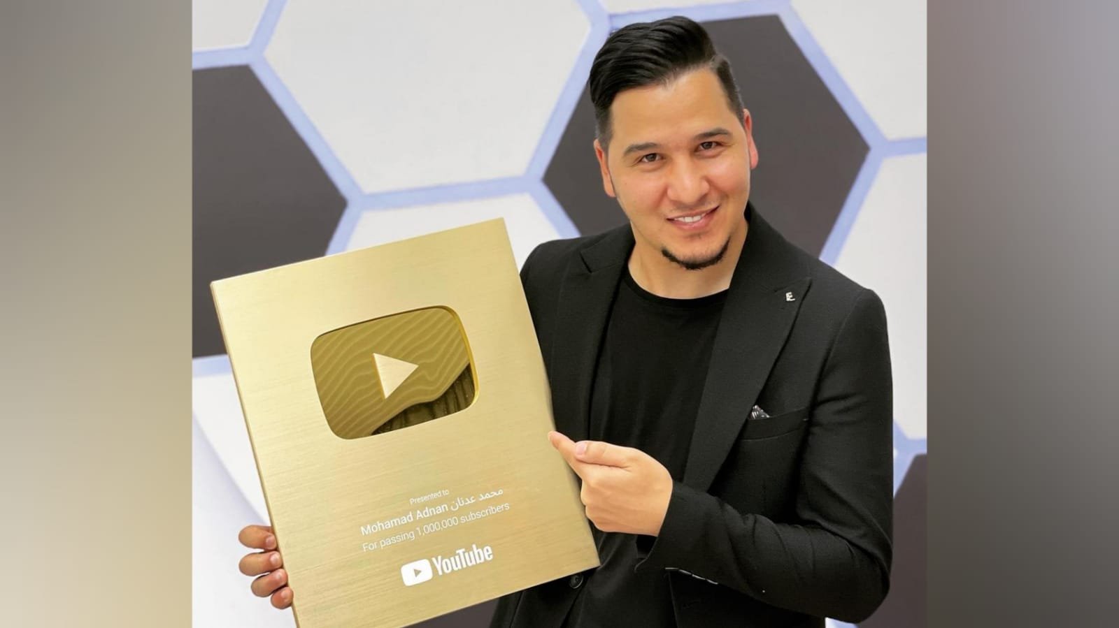 بعد الجهد الكبير والمثالي الذي قام به المحلل والمذيع الرياضي المشهور محمد عدنان، تجاوز عدد متابعيه على قناة يوتيوب المليون متابع، الأمر الذي خوله الحصول على الجائزة الذهبية من يوتيوب. بالإضافة الى ذلك، تم اختياره من بين آلاف المحللين كناشط رسمي لكأس العرب FIFA.